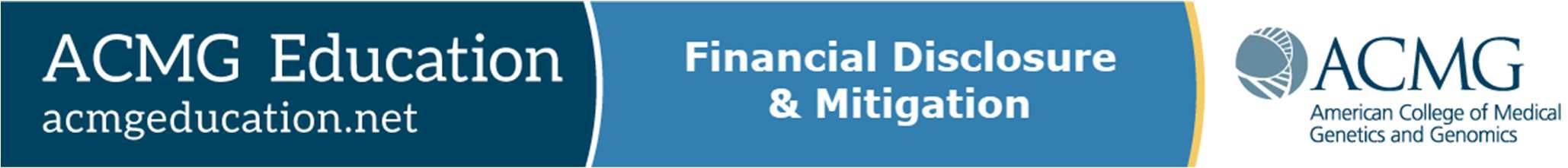 ACMG has implemented the following procedures to ensure the independence of ACE activities from commercial influence/promotional bias, the Accreditation Council for Continuing Medical Education (ACCME) requires that providers (ACMG) must be able to demonstrate that: 1) everyone in a position to control the content of an ACE activity has disclosed all financial relationships that they have had in the past 24 months with ineligible* companies; 2) ACMG has implemented a mechanism to mitigate relevant financial relationships; and 3) all financial relationships with ineligible companies are disclosed to the learners before the beginning of the educational activity. The learners must also be informed if no relevant financial relationships exist.