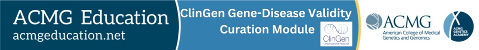 This ClinGen Gene-Disease Validity Curation module is intended to provide learners with educational credit for participating in ClinGen gene curation activities and is available to individuals who are existing members of ClinGen GCEPs and have had at least one gene curation previously approved by a ClinGen GCEP.